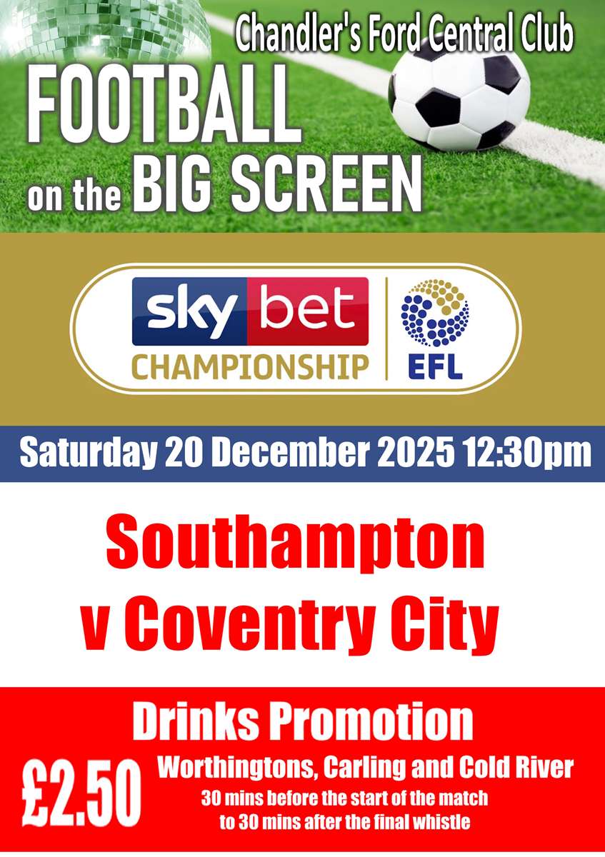 Football on the BIG Screen 12:30pm - Southampton v Coventry City |