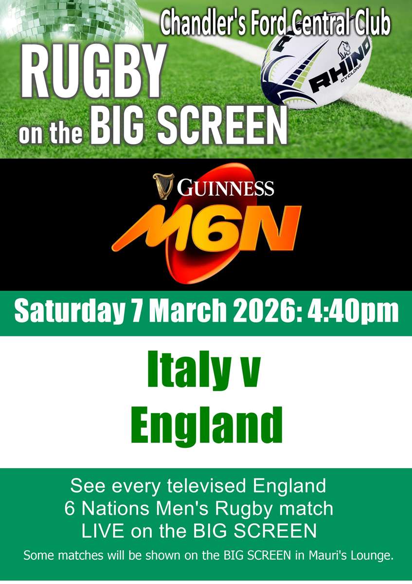 Rugby on the BIG Screen 4:40pm - Italy v England |