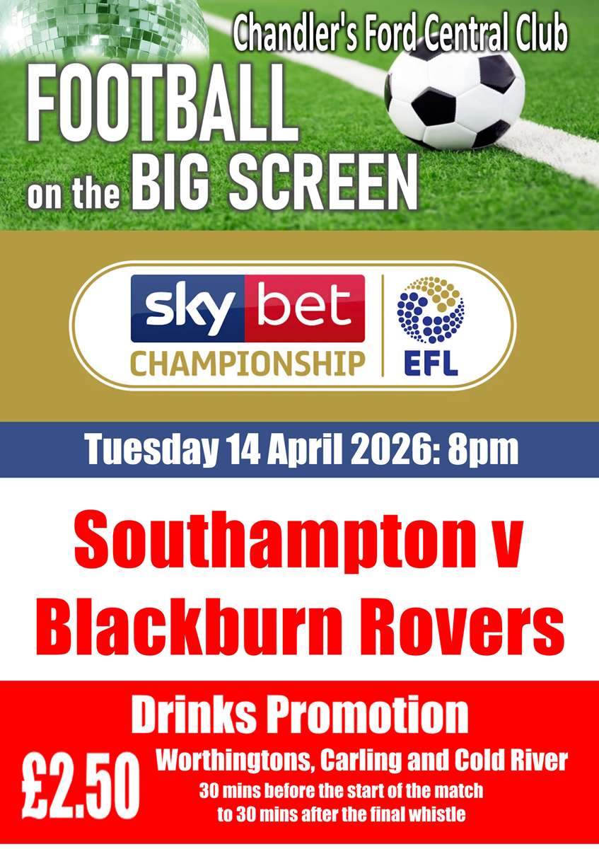 Football on the BIG Screen 8pm - Southampton v Blackburn Rovers |