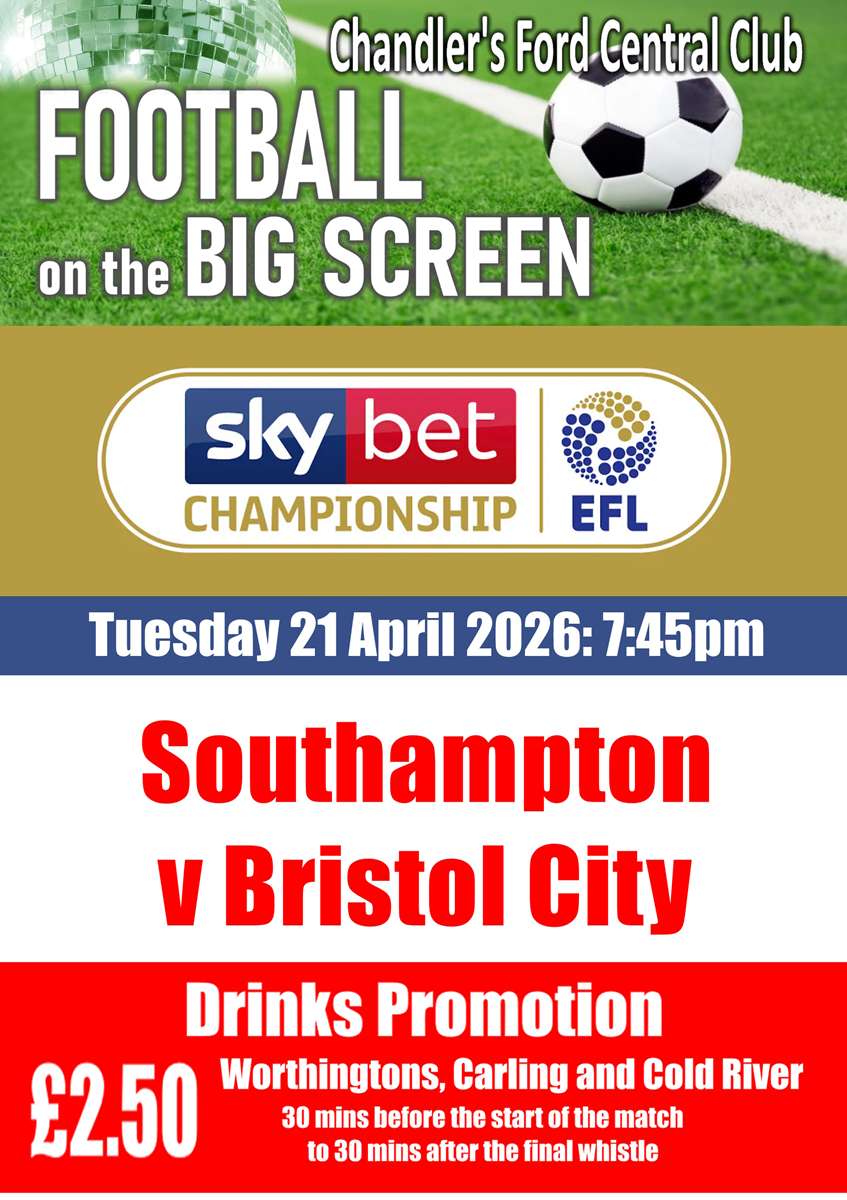 Football on the BIG Screen 7:45pm - Southampton v Bristol City |