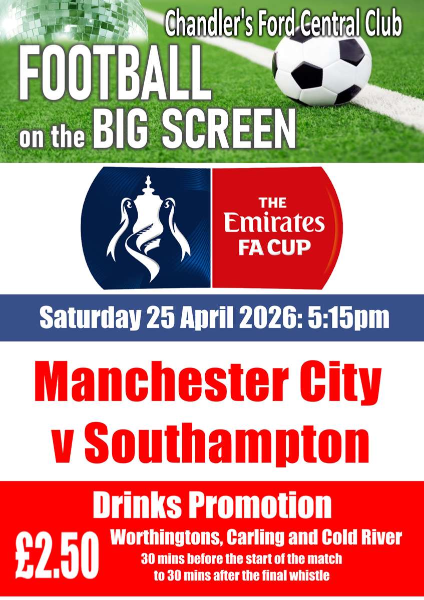 Football on the BIG Screen 5:15pm - Manchester City v Southampton |
