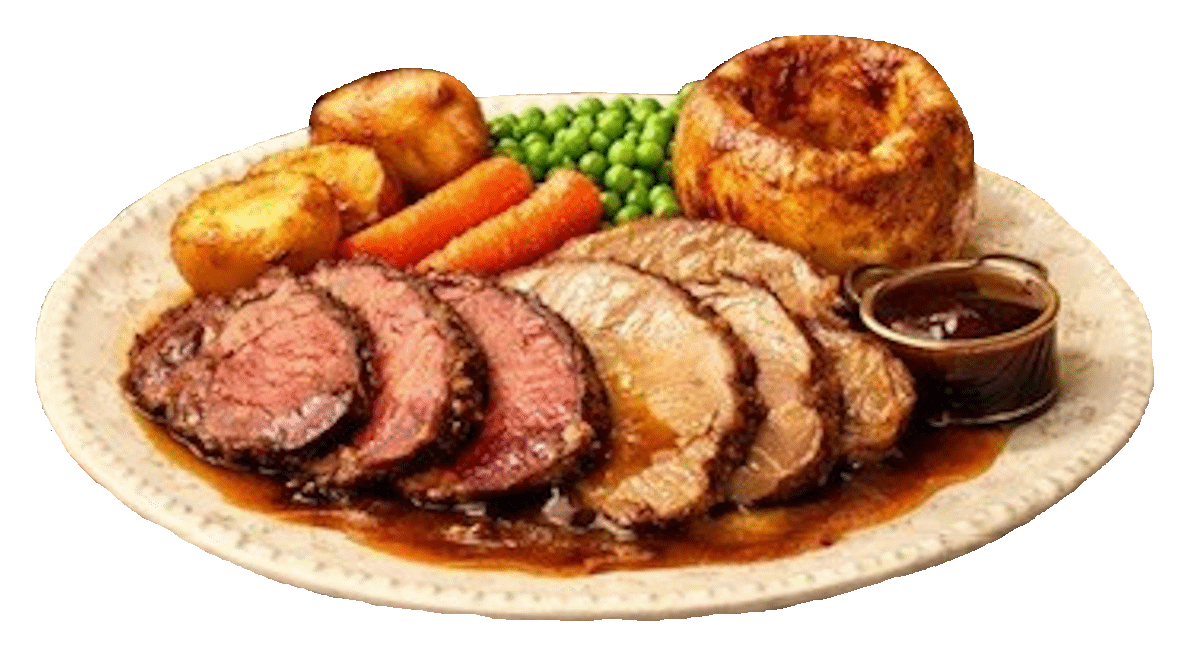 pudding, roast potatoes & a selection of meats
