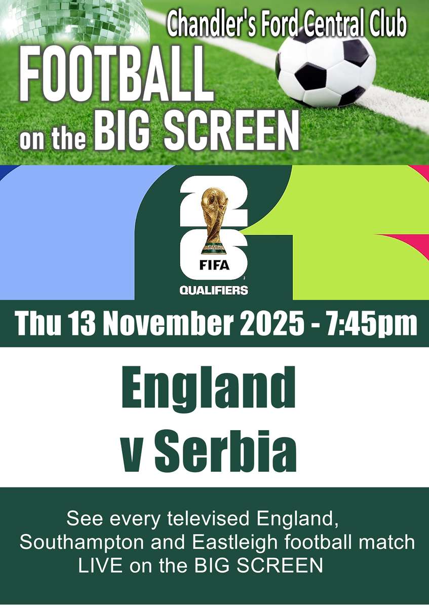Football on the BIG Screen 7:45pm - England v Serbia |